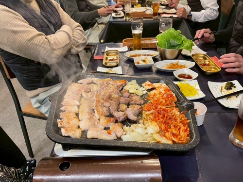 さて、今月も懇親会を行いみんなでサムギョプサルを食べました。