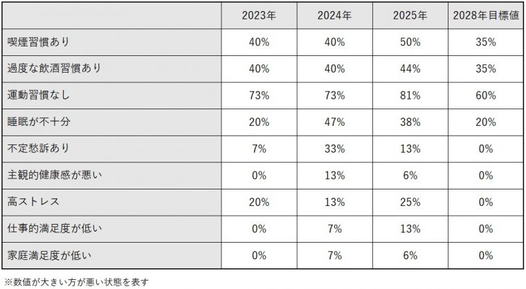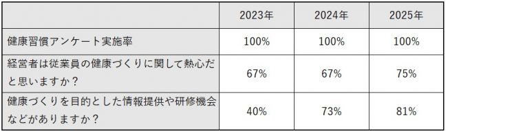 従業員に向けて健康習慣アンケートを実施し、生活習慣や行動の分析を行っています。