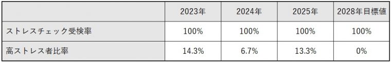 結果:ストレスチェック 高ストレスの割合 2023年14.3%から2024年6.7%と減少。