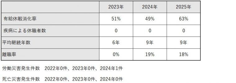 健康習慣だけではなく、有給取得率や労働災害防止にも取り組んでいます。