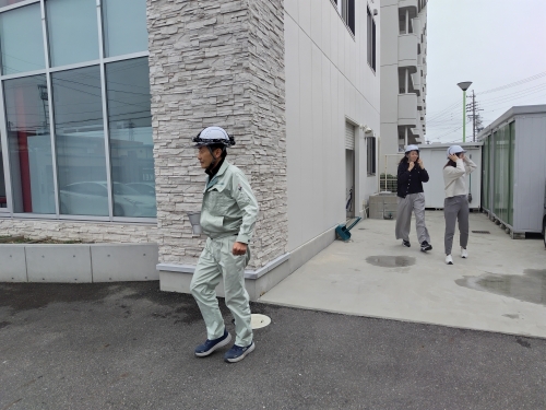 最終的に駐車場へ避難し、避難時の注意点や行動のポイントについて確認しました。