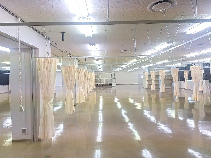 今回の改修工事は、前年度床が仕上がっている区間を通行し、今回の工事エリアに行く必要があります。