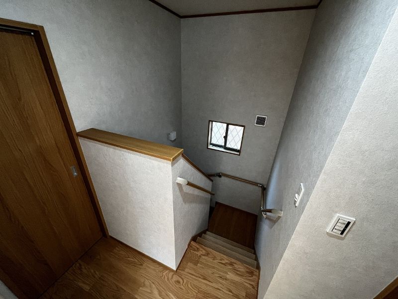 ・お施主様から各所メンテナンスがしやすいようにとご要望がありました。階段についても当初設計から変更し、踊り場を設ける事で中窓及び換気扇のメンテナスがしやすくなり非常に喜んでいただく事ができました。
